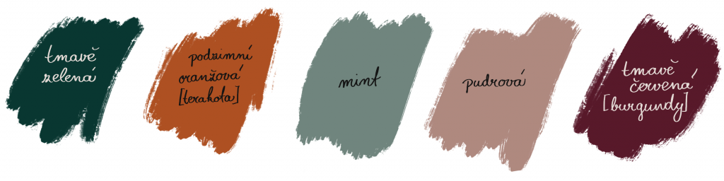 – Pokud se chcete sladit do barev svatby, volte tmavší podzimní tóny a nebo se inspirujte touto paletkou: